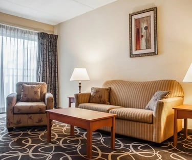Relax in a spacious queen suite just minutes from the falls, with cozy beds and modern comforts.